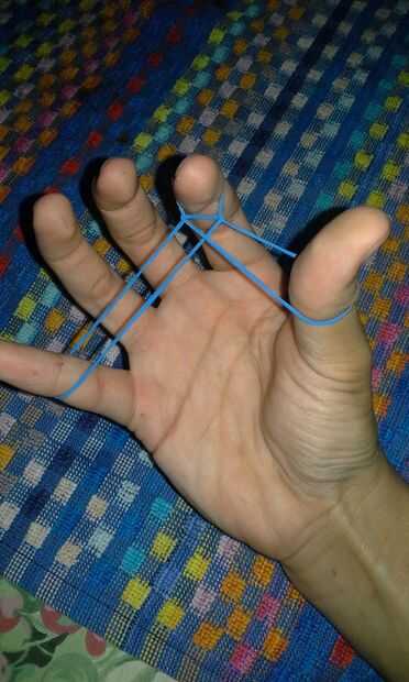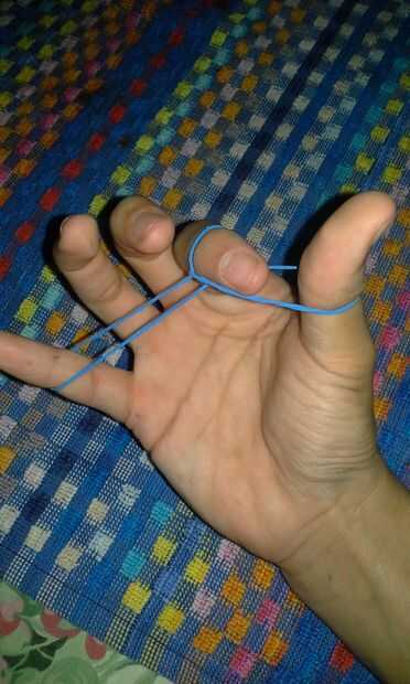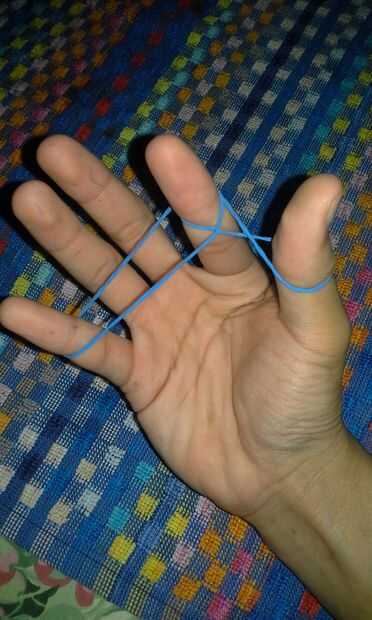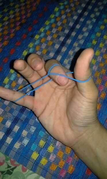 Soltar la hebra superior de la banda de goma en la mayor parte superior de su dedo índice.