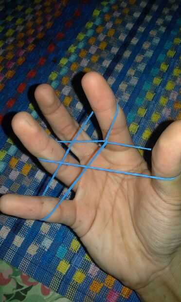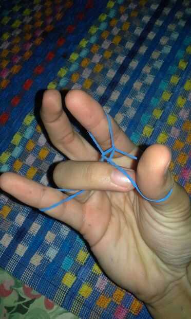 Haz tu dedo anular en movimiento y alcanzar la hebra por debajo de su pulgar.