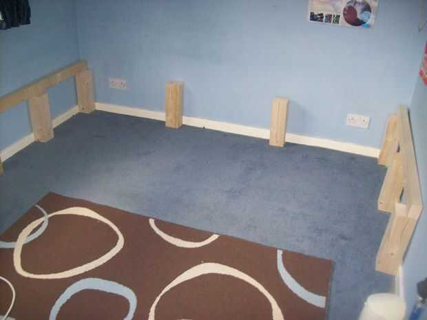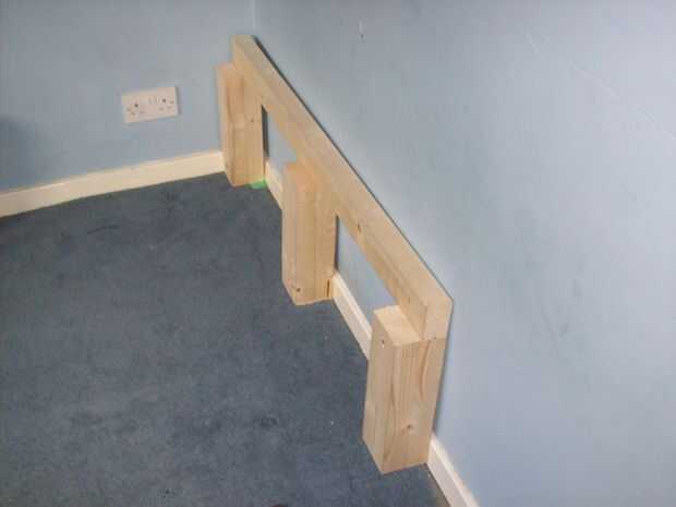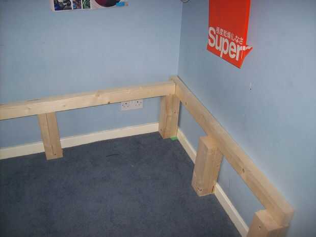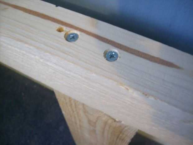 Primer lugar la longitud de 120cm en madera en cada extremo de la etapa, como se muestra en la cuadro 1. Una vez que has hecho este ejercicio piloto del agujero para el tornillo y atornille un tornillo 100mm a través de la longitud de 120cm de madera y luego en la pierna.