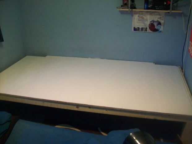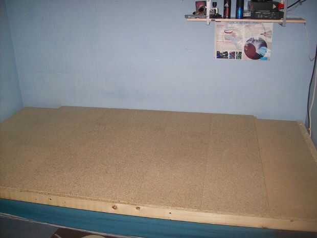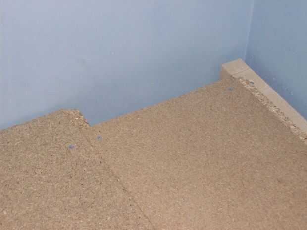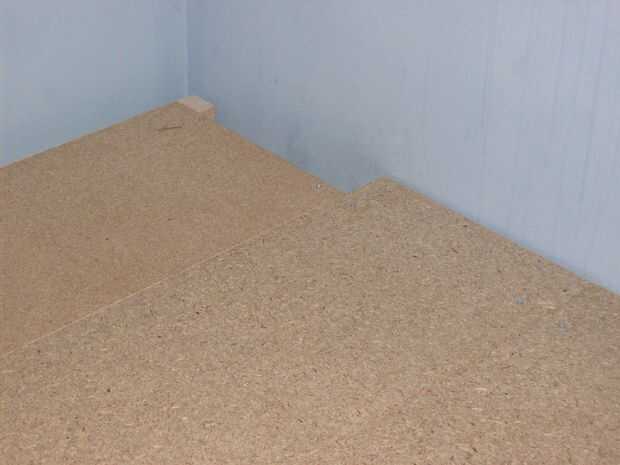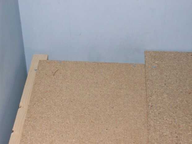 En primer lugar pone como muchos loft tablas mientras que usted necesita en el escenario. Puede que necesite cortar un poco más corto si hay cualquier tomas de corriente. Una vez que están todos en posición les Atornille con tornillos de 40 mm.