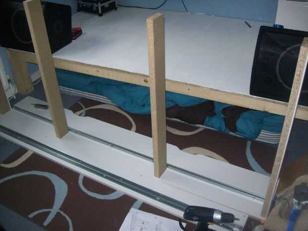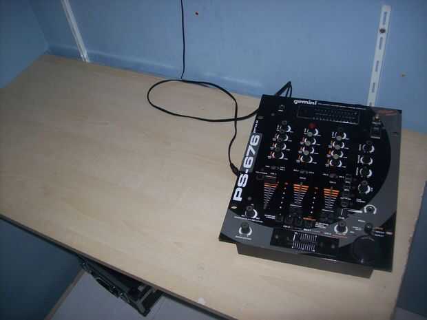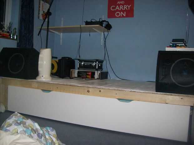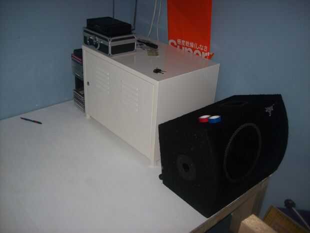 También opté por tener un gabinete para sostener algunos de mi equipo de DJ que vino también de ikea. Pienso montar un escritorio así (que hice a mi mismo) de dos soportes de estantes grandes y algunos de madera laminada.