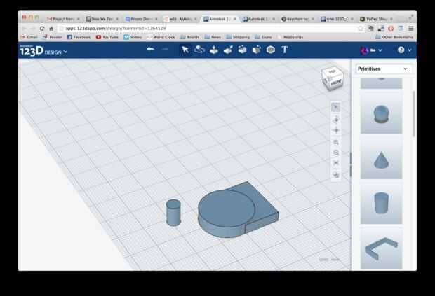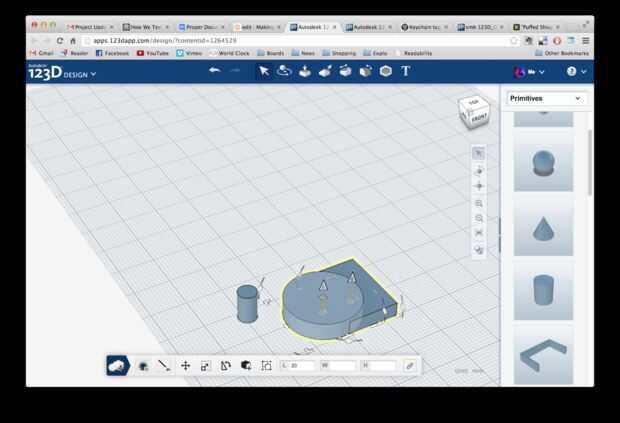 En este caso, añadir un cilindro, hacen 20mm de ancho y largo y 5mm de alto. También añada un cubo, 20x20x4mm.
