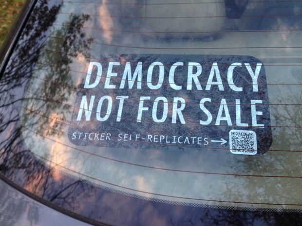 Zap a uno mismo-repliegueetiqueta engomada de la ventanacon su QR reader y se unirá a una imagen jpeg que contiene: 1, el diseño de la etiqueta; 2, instrucciones DIY simple en el margen; y 3, el mismo código QR que solo zapping. La replicación permite etiquetas engomadas difundir por el mundo sin dinero o transporte físico a través de la energía de las personas que quieren difundir el mismo mensaje. Conseguir una imagen jpeg para contener un código QR que enlaza a sí mismo implica un poco de prestidigitación: esto instruir capaz será su guía.