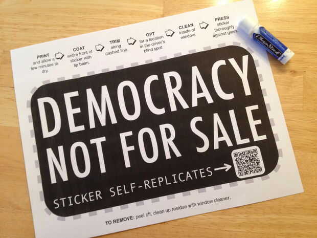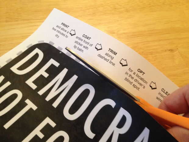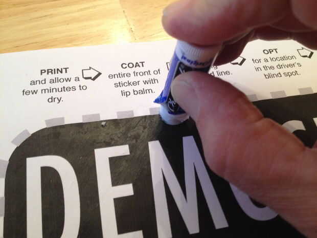 Estamos listos. Ahora alguien escaneo su etiqueta engomada vinculará a través de tu post del blog a una imagen que contiene todo lo necesario para que su propia etiqueta, y su etiqueta también se reproducen automáticamente. Para hacer su propia etiqueta física, siga las instrucciones en la imagen: imprimir en papel ordinario, cubrir la parte frontal de la etiqueta engomada con bálsamo para los labios (todo el camino de salida a los bordes), cortar a lo largo de la línea de puntos, pulse la etiqueta de fondo contra el interior de una ventana en un lugar que no obstruya la visión del conductor (ver este instructable). Quiera el código QR entre los alambres del descongelador del centro, pero encontré que mi escáner QR puede leer el código de todos modos!