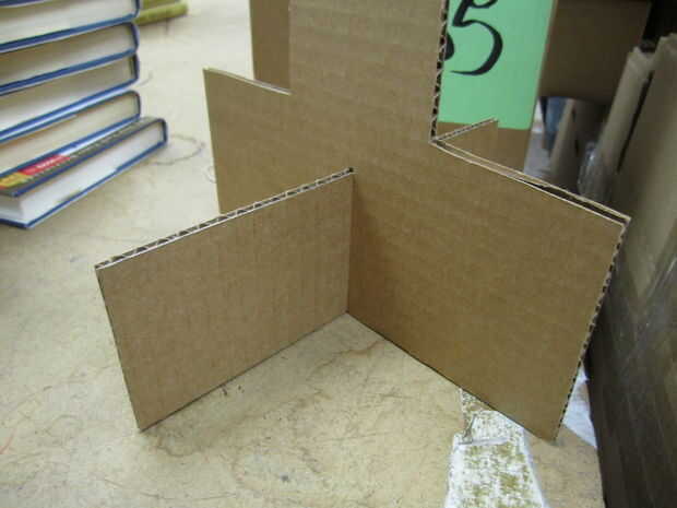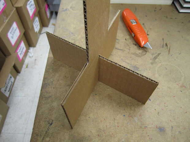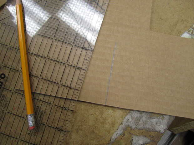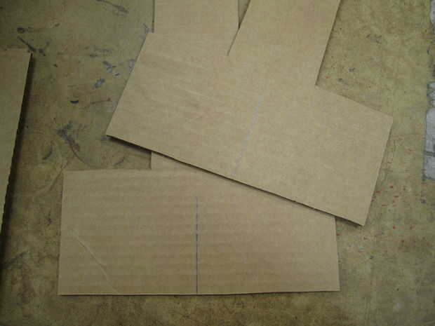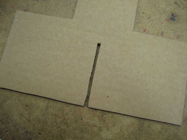 Marcar la línea media en las bases y hacerla un poco más de 3 pulgadas en longitud. Con le cuchillo, marcar esa zona una y otra hasta recortar un área comparable al espesor de la cartulina.