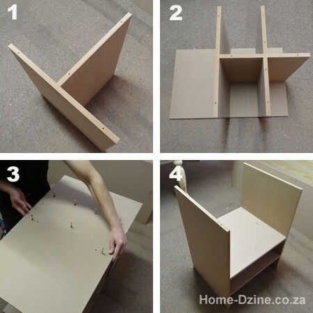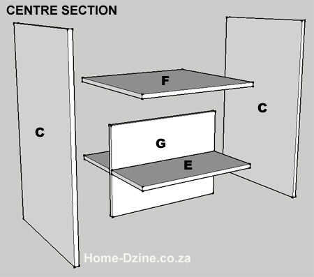 1. a lo largo de la longitud de 504 mm, medida de 226 mm de ambos lados y trace una línea en la parte superior e inferior de la estantería superior [F]. Usando esta línea como guía, coloque el estante superior para el soporte del estante [G] a través de los agujeros previamente perforados y avellanados en el estante superior.
