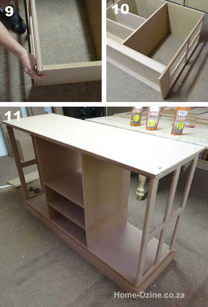 Antes de colocar los paneles laterales corte las aberturas con una sierra de calar. Consulte el paso 12.