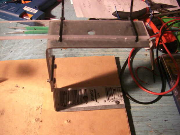 Luego que cable atado el brazo al soporte. (el agujero fue previamente perforado)