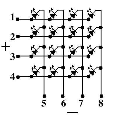 La matriz tiene 16 LEDs conectados en un sistema x, y matriz.