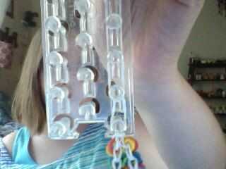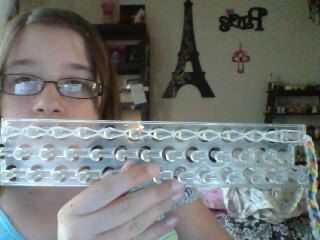 Esta es la pulsera como se verá cuando esté terminado. Yo recomiendo usar 3 colores diferentes para esta pulsera. Antes de poner las bandas en el paso siguiente Asegúrese de que doble todas las bandas, si crees que me refiero a hacer una banda de la