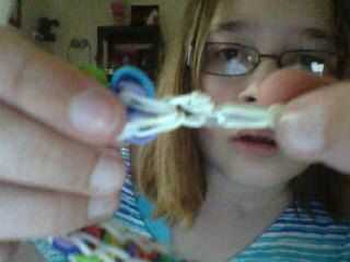 Esta es la pulsera como se verá cuando esté terminado. Yo recomiendo usar 3 colores diferentes para esta pulsera. Antes de poner las bandas en el paso siguiente Asegúrese de que doble todas las bandas, si crees que me refiero a hacer una banda de la