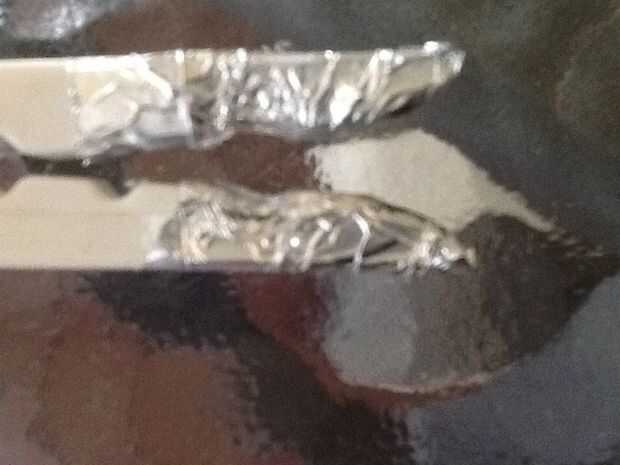 Primero tome la clavija y envolver una pequeña cantidad de papel de aluminio alrededor de ambos extremos.