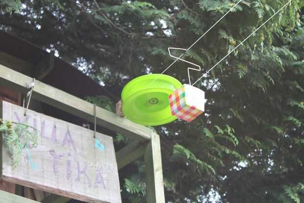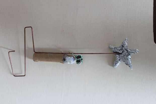 Cuando ponemos el ascensor hacia arriba en la casa, pronto una góndola capaz de transportar un mensaje o una pequeña carga vino pronto a la mente. En el tercer cuadro se muestra una manera simple de hacer uno con una caja de cartón que tenía por ahí. El final del alambre de acero fue doblada perpendicularmente e insertado en una gota de pegamento caliente del derretimiento en la parte inferior.