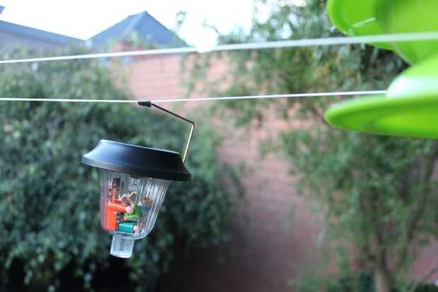 Como dicho LED throwies funcionaría a, pero sería menos ecológico. En cambio, una posibilidad más verde es usar luces solares de jardín (se última foto). La parte transparente de plástico puede incluso doble como una carga o jugar figura espacio del pasajero. Para las luces de 18 en el partido sin embargo hubiera sido a caro.