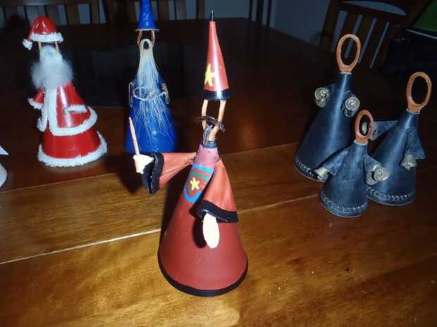Primero hice estos muñecos de cuero como regalos para los amigos, son fáciles de hacer y permiten gran cantidad de licencia artística, deja volar tu imaginación ir salvaje. Mi estatuilla más popular es el asistente, que vamos a detallar aquí. También he hecho Ángeles, Brujas, Santa, coros de campana y coros de la iglesia (ver fotos). La bruja fue un regalo a Joanne Worley cuando interpretó a la malvada bruja del oeste en la producción de Broadway del mago de OZ en 1998. ¡Que te diviertas!