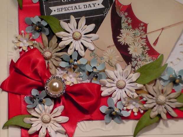 Este tutorial de la tarjeta es una tarjeta de estilo collage preciosa daisy, ideal para cualquier cardmaker con un montón de adornos. Uso una amplia gama de flores diferentes e incluyen la cinta de raso para adornar la base de la tarjeta. Esto es fácil cuando sabes cómo tarjeta y con impresionantes resultados finales.