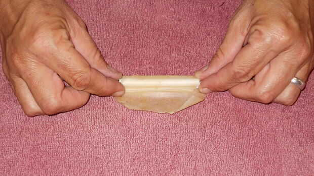 Toma una hoja de piel de látex (comprar en una tienda o hacer su propio) y cortar un cuadrado largo suficiente para envolver la tres paja pegadas. Cepillo de látex un poco sobre la paja. Permiten parcialmente seca. Abrigo de látex piel alrededor de la paja. Tire con fuerza. Cepillo de látex un poco sobre el borde externo de la piel para sellarlo cerrado. Permiten que el látex seque completamente antes de proceder.