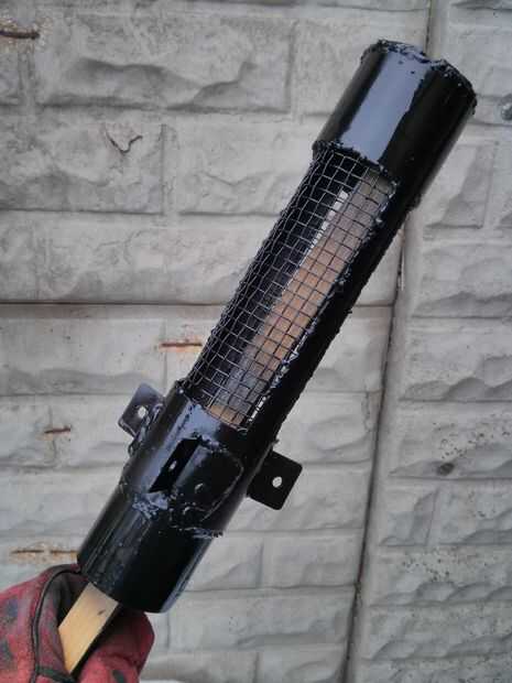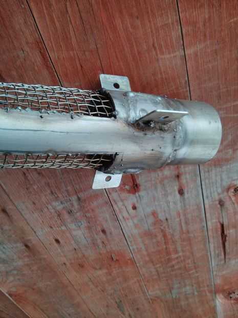 Una sección de conexión (igual que las secciones de la chimenea normal) fue soldada con autógena en el lugar. El parachispas ahora felizmente sentarnos encima de la chimenea y ojala evitar chispas salir.