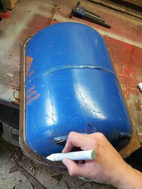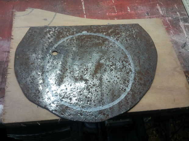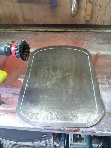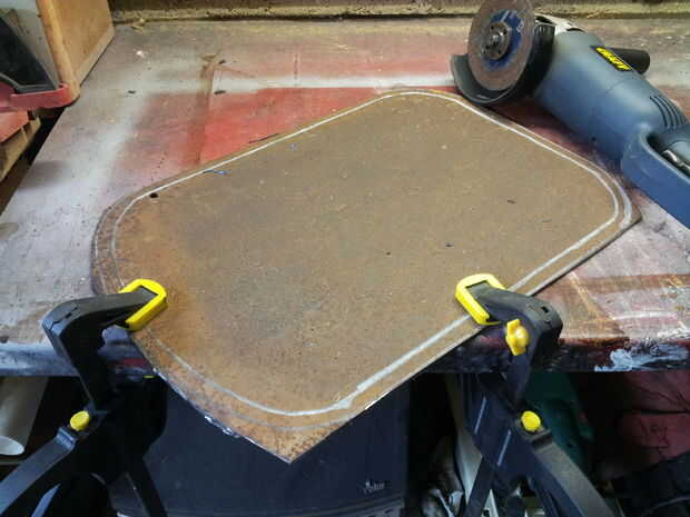 Añadir unos 10mm alrededor del borde para proporcionar un labio y cortar con la amoladora. Limpiar los bordes un poco con un disco de la aleta.
