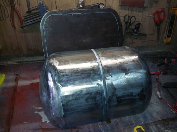 Utilizar la amoladora angular otra vez con el disco de la aleta. Trabajado y no tardó que. Sin embargo, todo en mi garaje (incluyendo mi moto) está cubierto de una fina capa de polvo azul.