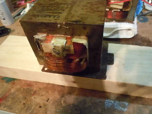 Lo primero y principal a la posición son los transformadores, todo lo demás será construido a su alrededor. Prefiero ponerlos en el lado derecho de la Junta y con el todas las otras cosas en el lado izquierdo. Puso las conexiones primarias frente a la parte trasera y las conexiones secundarias hacia el frente. Como se puede ver, los dos transformadores que estoy usando son muy similares excepto en tiene un pequeño borde sobresale el lado así que puse este otro a la izquierda para el otro transformador más se le de vuelta y tápelo. Porque un lado del transformador estaba en la cima de este labio fue irregular así que puse un pequeño trozo de metal en el otro lado a nivel hacia fuera. Después de tener sus transformadores tal como te gustan, deja los transformadores en el tablero y utilice un rotulador para hacer marcas a través de los orificios de tornillo en la parte inferior. Después han marcado donde van los tornillos, quitar los transformadores y perforar para ellos, luego colocar en y tornillo de EM en.
