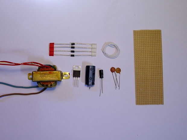 - Transformador que tiene una salida de 14v - 35v CA con una salida actual entre 100mA a 1A, dependiendo de la cantidad de energía que se necesita. (Encontré un transformador de 16v 200mA en un despertador roto).