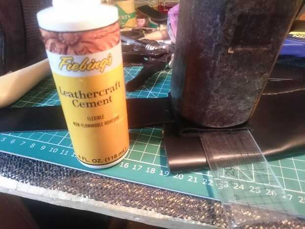 hasta que el ahora puntada preparada cuero funda y poner un peso o fijación en él deje secar completamente el pegamento.