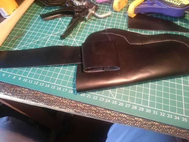 poner simplemente cortado 2 rectángulos de cuero Asegúrese de que uno es lo suficientemente largo y suficientemente delgada para caber sobre la empuñadura de la pistola y preparar el cuero para coser esto significa preparar a ambos la funda y el cinturón con los golpes del cuero para diseñar el patrón de puntada. Asegúrese de que uno es lo suficientemente larga y delgada para caber sobre la empuñadura de la pistola