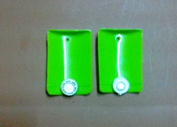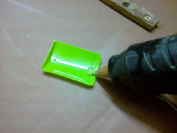 Utilice la pistola de pegamento caliente y pegar una mitad del botón a cada lado