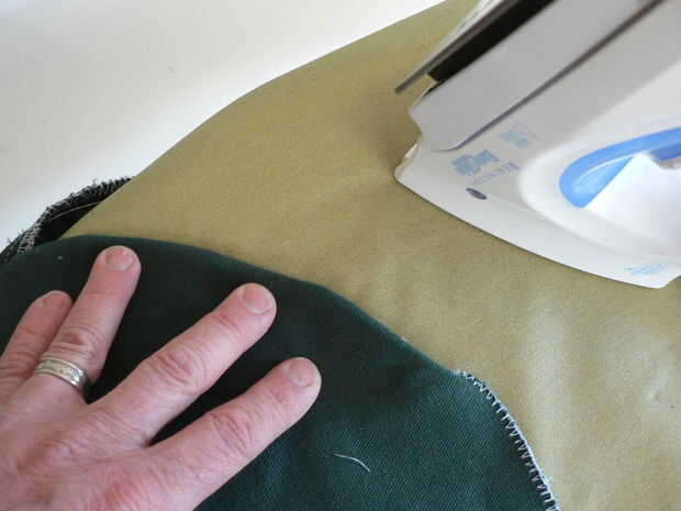 Diríjase a la tabla de planchar y plegar bajo y ambos lados de la abertura de hierro. Si en la tapa por lo menos en alrededor de 12mm (1/2") y podría hacer más para que coincida con las costuras en el paso 7.