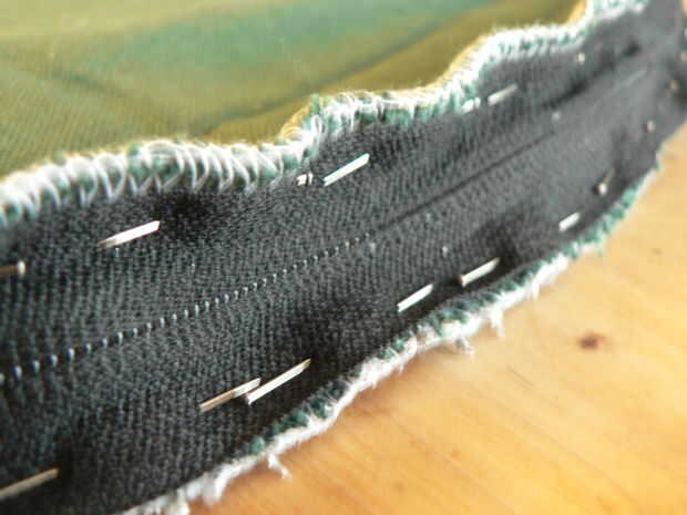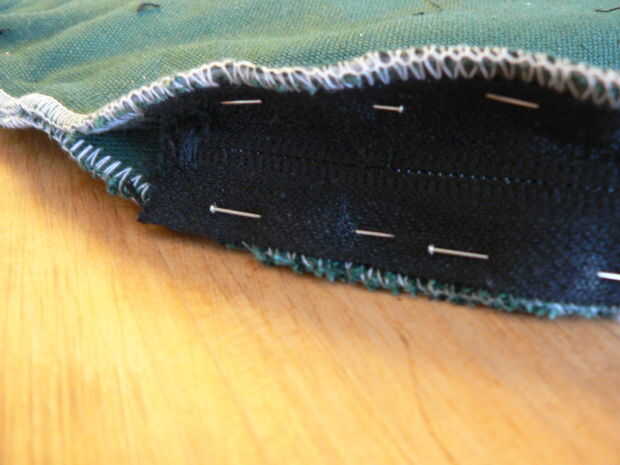 4) terminé tapa costura a ambos lados de la cremallera (como en el paso 10) para mantener la tela de interferir con el zip pero al menos se fue ya cosida tan no casi tan tedioso.