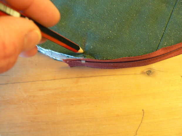 Marcar ambos extremos de la cremallera en el forro (piezas superior e inferior)