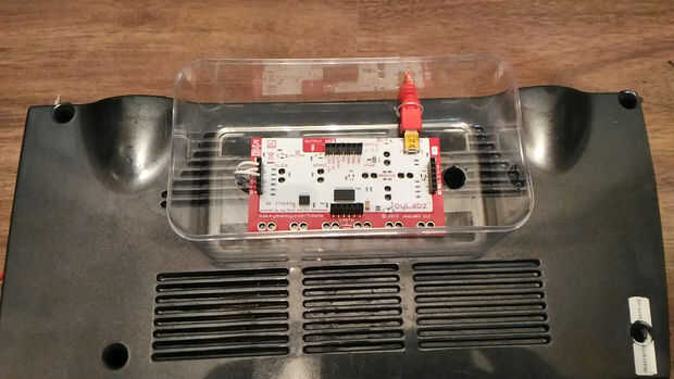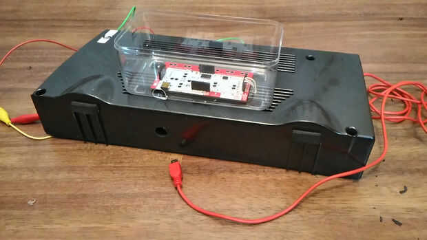 Abrir otro agujero (o utilizar cualquier parte abierta de la caja) para tomar el cable de la caja y conectarlo a la computadora.