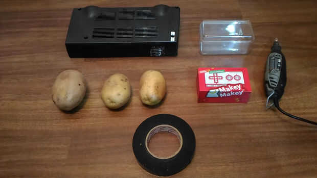 - Según la actividad demostrará en público: computadora, verduras de su elección (en este caso, patatas), cargado de videojuego, cables extras, pinzas de cocodrilo,