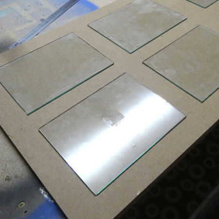 1. organizar los cristales individuales en el marco. Puede utilizar estos como una guía para la medición y el diseño correcto que desea para su galería de imagen de la marca. Para nuestro proyecto los cristales se espacian aproximadamente 50 mm., con una brecha más grande en el centro.