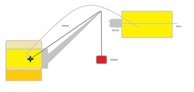 -HACER UN AGUJERO EN LA PARTE HORIZONTAL DE LA CAJA DE CARTÓN PARA QUE LLENAR DE NUEVO PUEDE SER INSERTADO HORIZONTALMENTE A TRAVÉS DE ESE AGUJERO.
