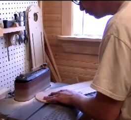 Los agujeros para los tornillos que perforé en el taladro, así como la apertura para la broca de fresadora, utilizo un poco de fostner para el taladro de broca router. Con todos los agujeros perforados doblé este extremo de la base con mi sierra de cinta que luego lo limpió en la lijadora de banda.