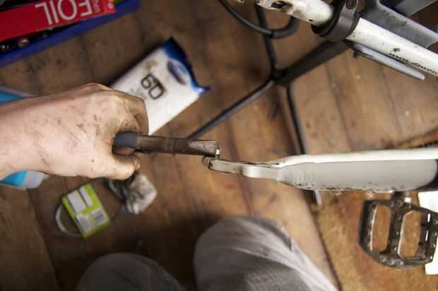 Hacer una guía de la cadena para una conversión de la bici de montaña de la solo-velocidad (5 / 6 paso)