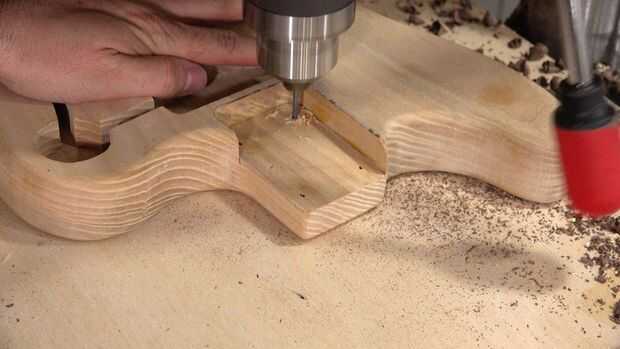 Sacarlos sobre perforar en el taladro y montar el cuello. Normalmente, antes de colocar el cuello en este punto usted pinta y termina la guitarra pero voy a guardar para otro video.