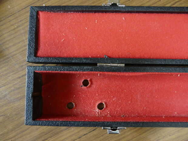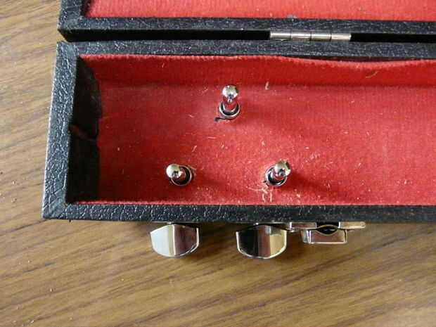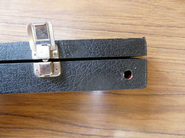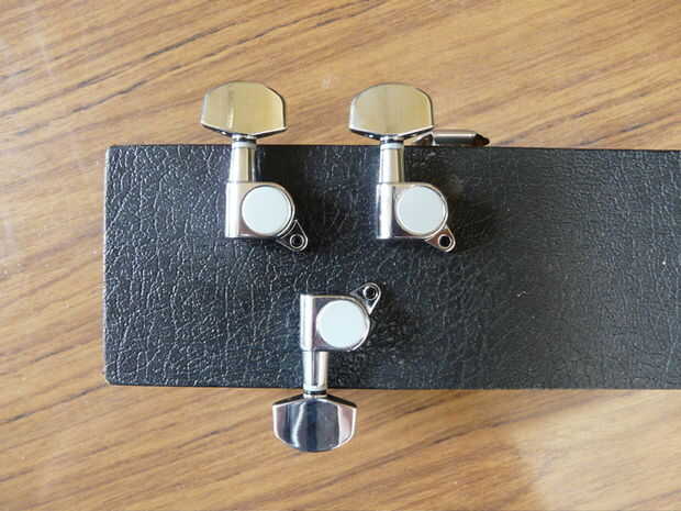 Soy zurdo, así que había perforado los agujeros para las clavijas de afinación en el extremo derecho, con la tapa abierta más cercana a mí, por lo que la tapa puede actuar como un descanso de la mano mientras que juego.