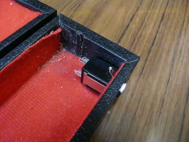 Luego perfore un agujero para el conector jack en el otro extremo de la caja, hacia el exterior.
