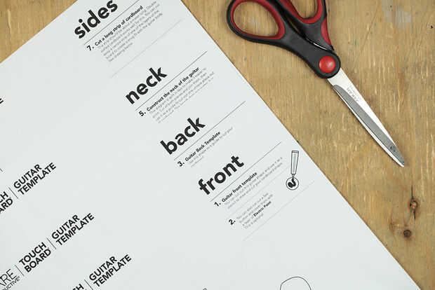 Para empezar, el link de descarga para la plantilla de la guitarra. Hemos diseñado la guitarra para caber en una página de A3, así que asegúrese de que la escala del papel es correcta antes de continuar.