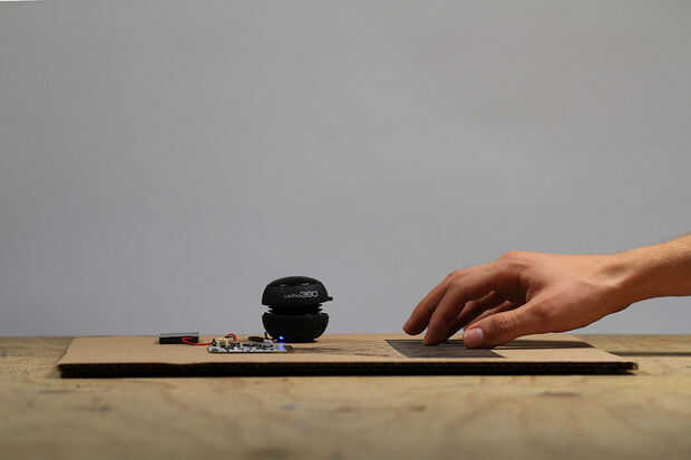 Conviértase en el próximo Dios del Rock! Hacer una guitarra DIY con SAM LabsPaso 1: Reúna sus materiales1. el reciclaje de una caja de cartón de raid.2. agarra tu SAM Slider y 3 sensores de presión / o 3 botones para que sea rock.3. haceros con unas