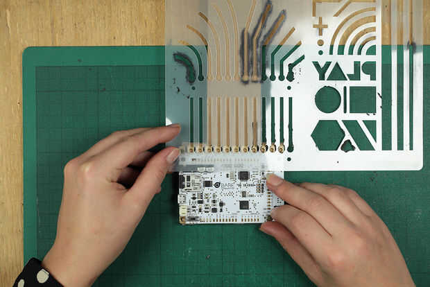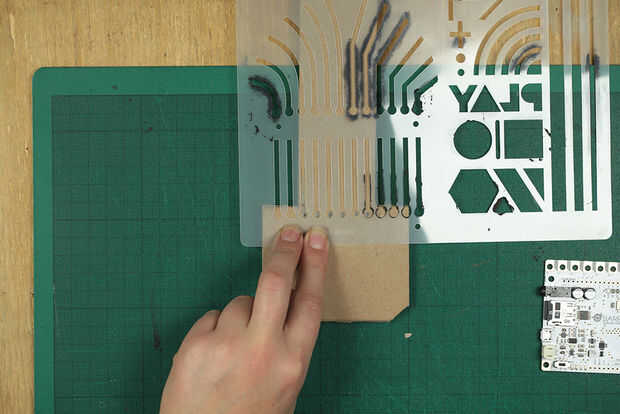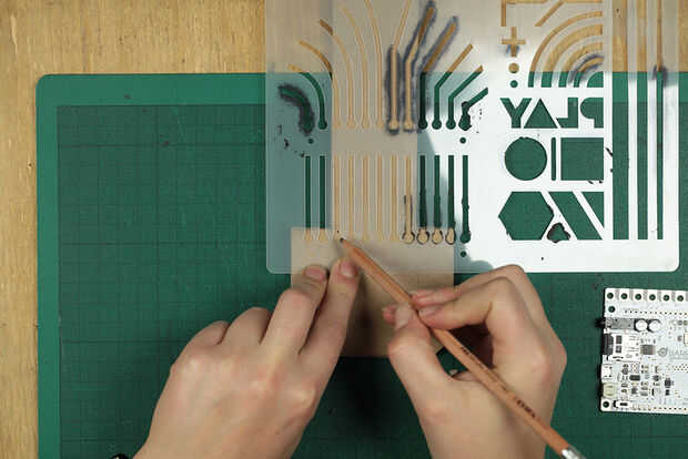 Utilizando tu plantilla, alinee la Junta para que usted puede marcar los 6 electrodos de mediados.