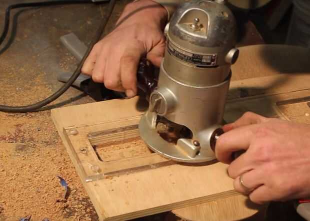 Pega el bloque en para colocar, formó y utiliza una plantilla para el bolsillo del cuello en la derrota para colocar. Copiar un instrumento que tiene si no una plantilla o con esto. Siempre termino puesta con un cincel. Además, acaparó más de la madera con una broca forstner antes de usar el router.