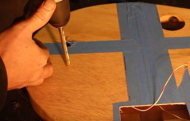 Después has averiguado donde todo irá, es momento de ponerla allí. En la puerta del hueco fina, pude cortar con un agujero para la recogida y electrónica la cavidad con una cuchilla de afeitar. en la puerta más gruesa, que necesitaba taladrar agujeros guía y utilizar sierras.
