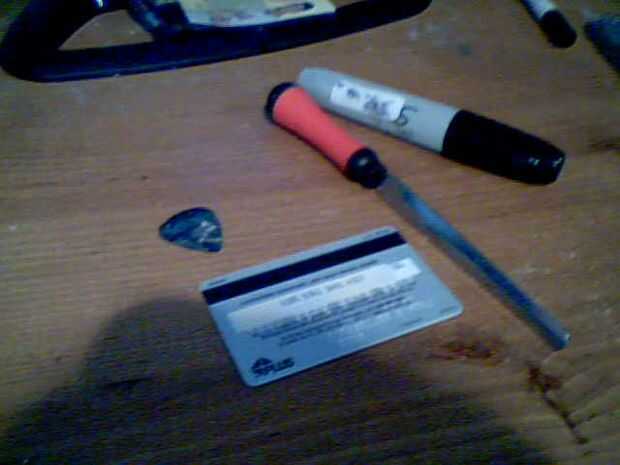 nunca tienen tarjetas de regalo de retención que se han utilizado colocando alrededor con ningún propósito? En este instructable les mostraré cómo hacer una guitarra pick de una vieja tarjeta de regalo o tarjeta de crédito.Paso 1: materiales Tarjeta