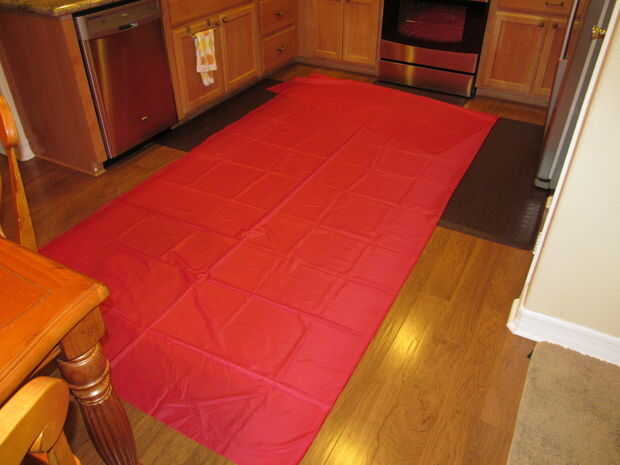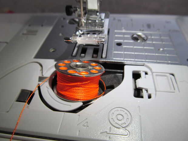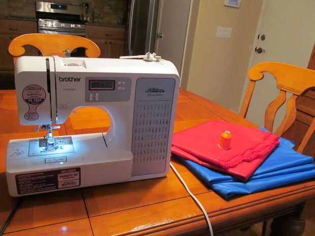 Este material sólo se extiende diagonalmente. Ya que estoy usando a la tela con el tejido, coser yo capaz de usar una línea recta. De lo contrario, hubiera tenido que usar una puntada de zig-zag para permitir el estiramiento. Ajuste la máquina de coser para que las puntadas fueron lo suficientemente amplia para evitar de ser un punto de fracaso. Si están demasiado juntos es una perforación bastante entonces una costura fuerte.