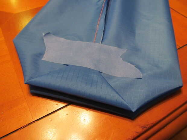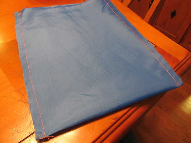 Tomé 1' pedazo cortado al principio del proyecto y doblé por la mitad. Luego cosí el cierre de lados. A continuación establecidos la bolsa en sus costuras y había grabado los puntos de doblado hacia abajo. Ver las fotos. Después de un par más costuras, la bolsa tuvo su forma básica.