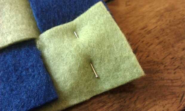 De todos modos, hay un riesgo bastante alto de la tela suelta como cose esta cosa, por lo que recomiendo un poco de fijación. Hacer un par de alfileres en los bordes que está actualmente no trabajando, sobre todo las esquinas y tal vez el centro de cada borde, y luego prender el borde que usted estará trabajando con primer.